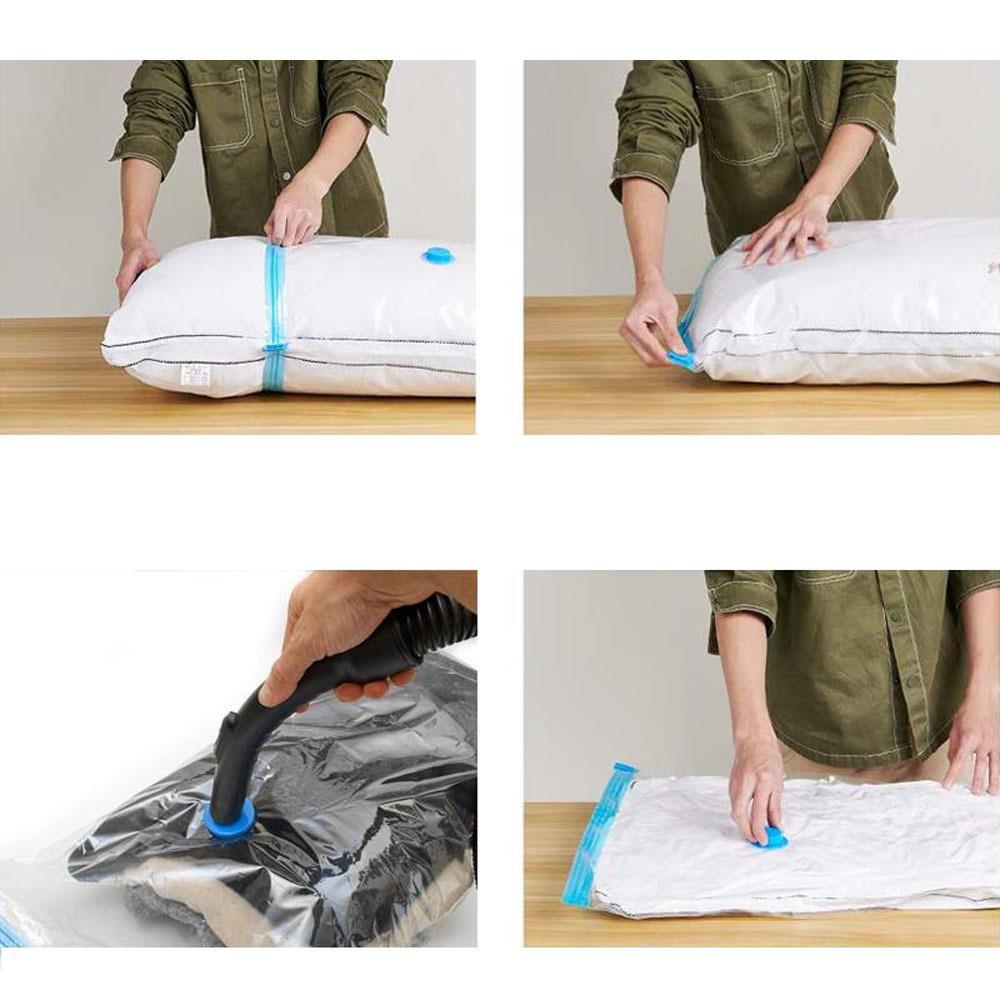 Vrecká boli špeciálne navrhnuté tak, že vám zaberú až o 75 % menej priestoru. Sú určené na oblečenie, deky, vankúše, plyšové hračky alebo plachty. Princíp fungovania je jednoduchý. Vložte veci do vrecka a potom z neho pomocou vysávača odsajte vzduch a uzavrite zipsom. Tým sa do nich nedostane žiadny prach, šatní moli, nenavlhnú a nebudú zapáchať. A čo viac? Vrecká nie sú na jedno použitie, ale možno ich používať opakovane.