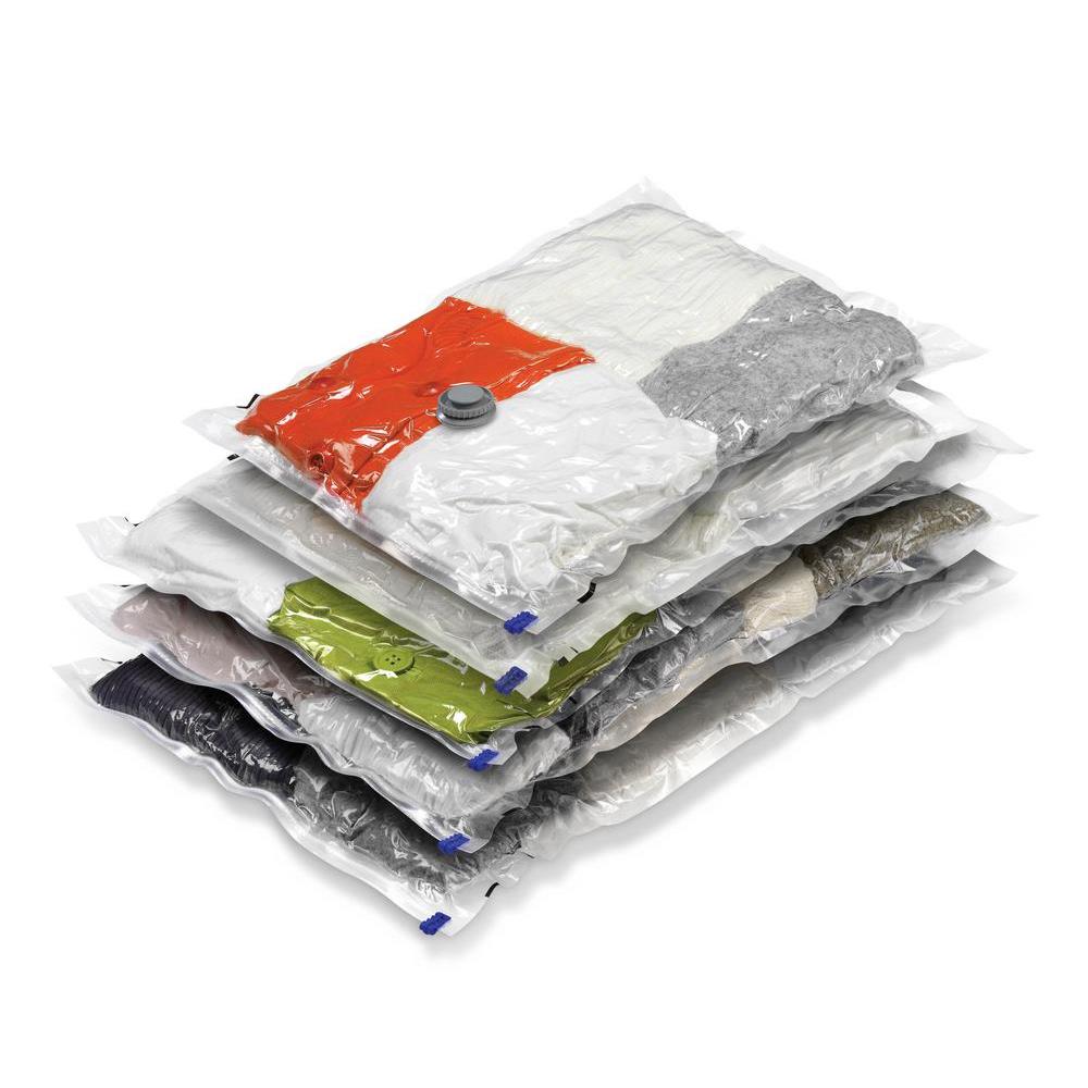 Vrecká boli špeciálne navrhnuté tak, že vám zaberú až o 75 % menej priestoru. Sú určené na oblečenie, deky, vankúše, plyšové hračky alebo plachty. Princíp fungovania je jednoduchý. Vložte veci do vrecka a potom z neho pomocou vysávača odsajte vzduch a uzavrite zipsom. Tým sa do nich nedostane žiadny prach, šatové mole, nenavlhnú a nebudú zapáchať. A čo viac? Vrecká nie sú na jednorazové použitie, ale môžete ich používať opakovane.