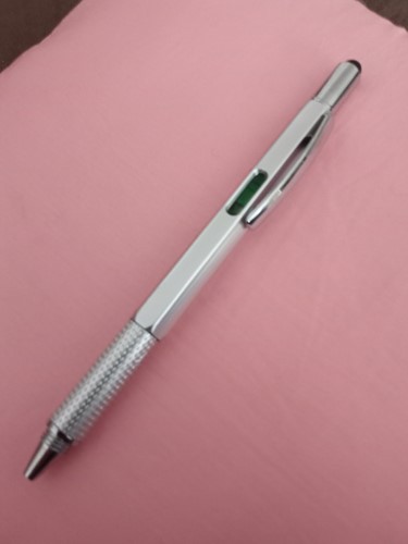 Pod stylusom sa skrýva skrutkovač s plochou a krížovou stranou – stačí len nasadiť stranu, ktorú potrebujete a môžete začať pracovať. V tele pera nájdete vodováhu a pravítko s mierkou. Toto šikovné pero je úplne univerzálny doplnok nielen do kabelky, ale aj do pracovnej aktovky, do dielne alebo do školy. Praktické pero 6 v 1 odporúčame ako originálny darček ku každej príležitosti.