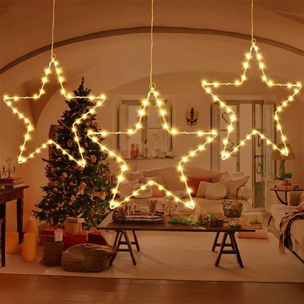 Žiarivá hviezda, ktorá premení okno na rozprávkovú scenériu.