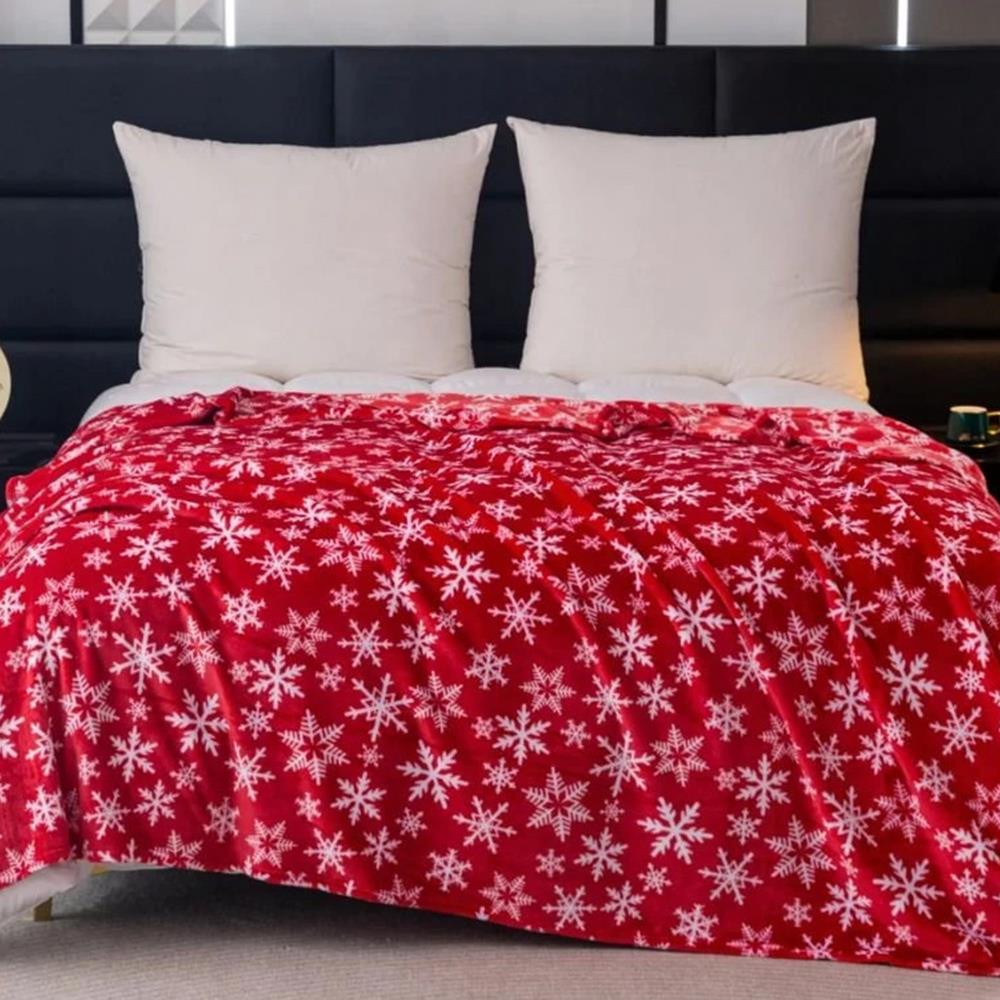 Vianočná mikroflísová deka s vločkami 160 x 200 cm