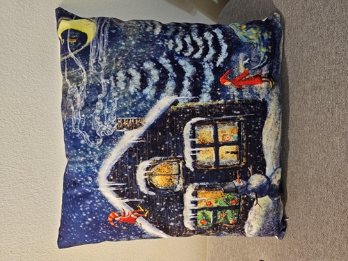 Vianočná svietiaca obliečka na vankúš - vianočná chalúpka