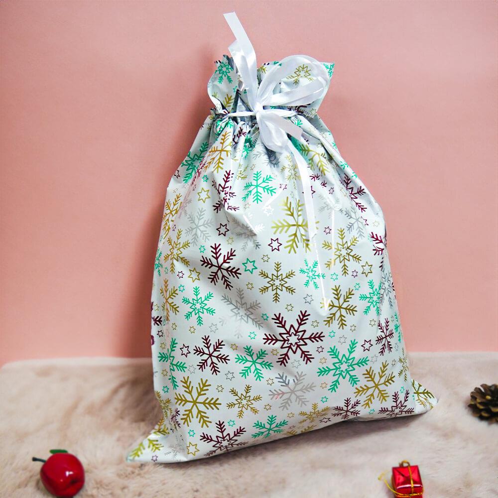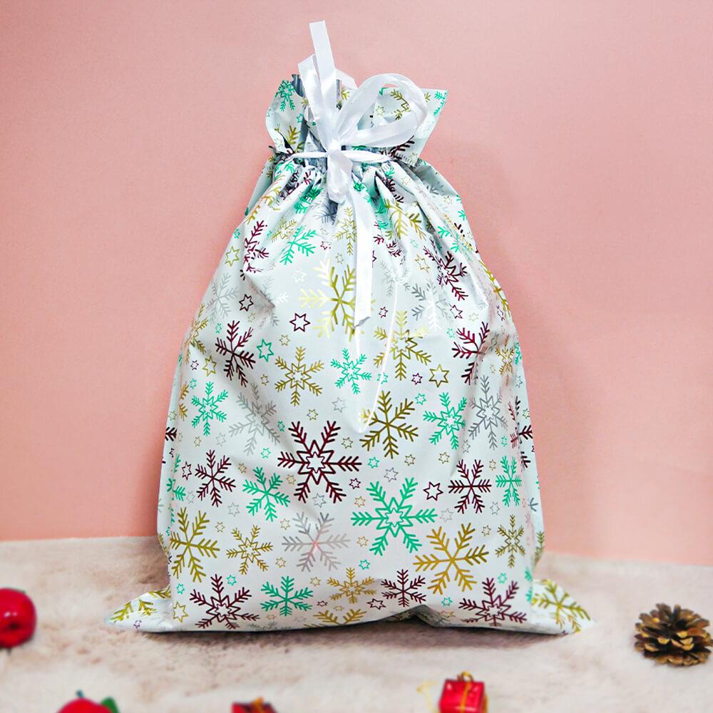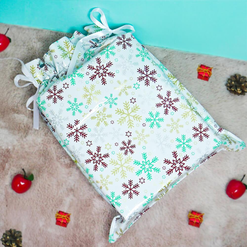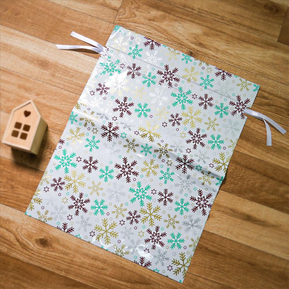 Obrázok z Vianočné darčekové baliace vrecko so šnúrkou - 51x39 cm - snehové vločky