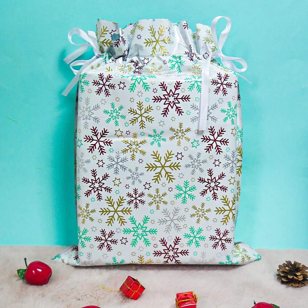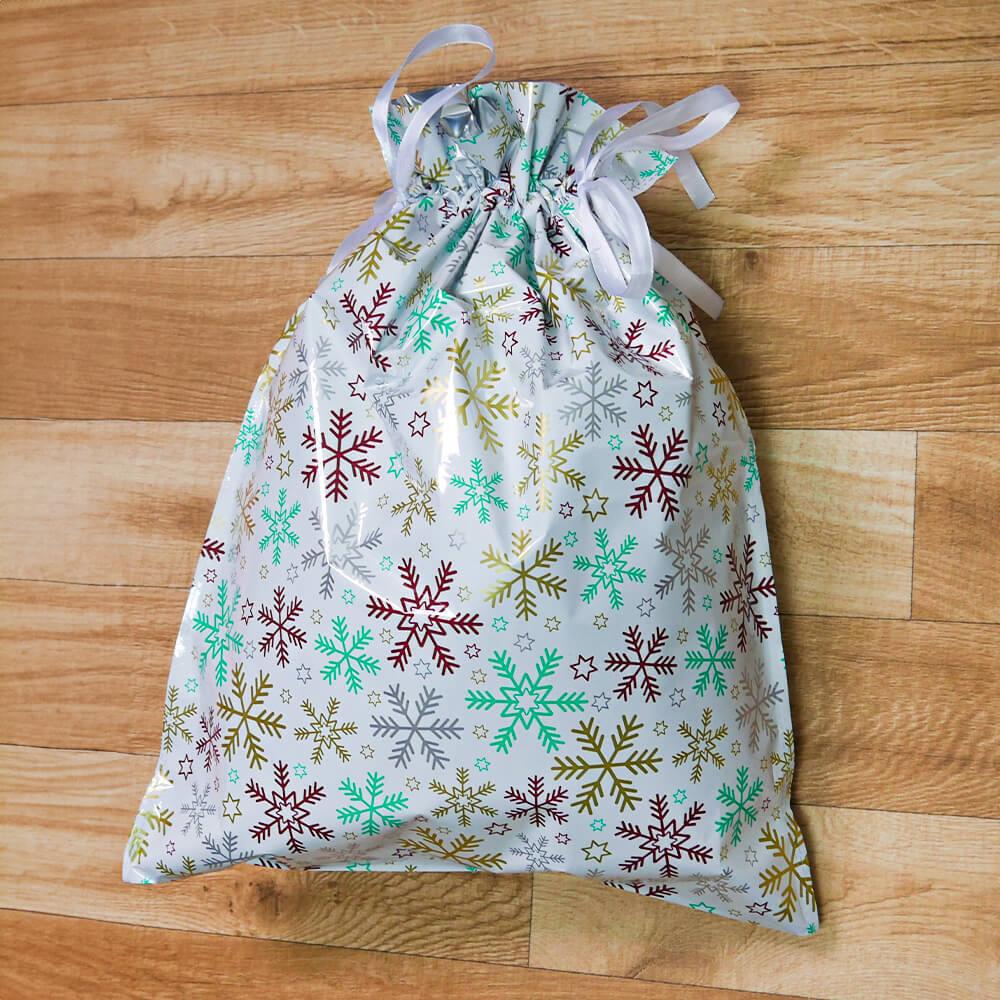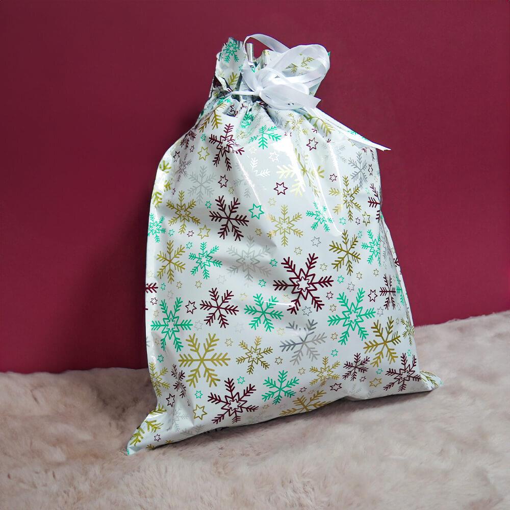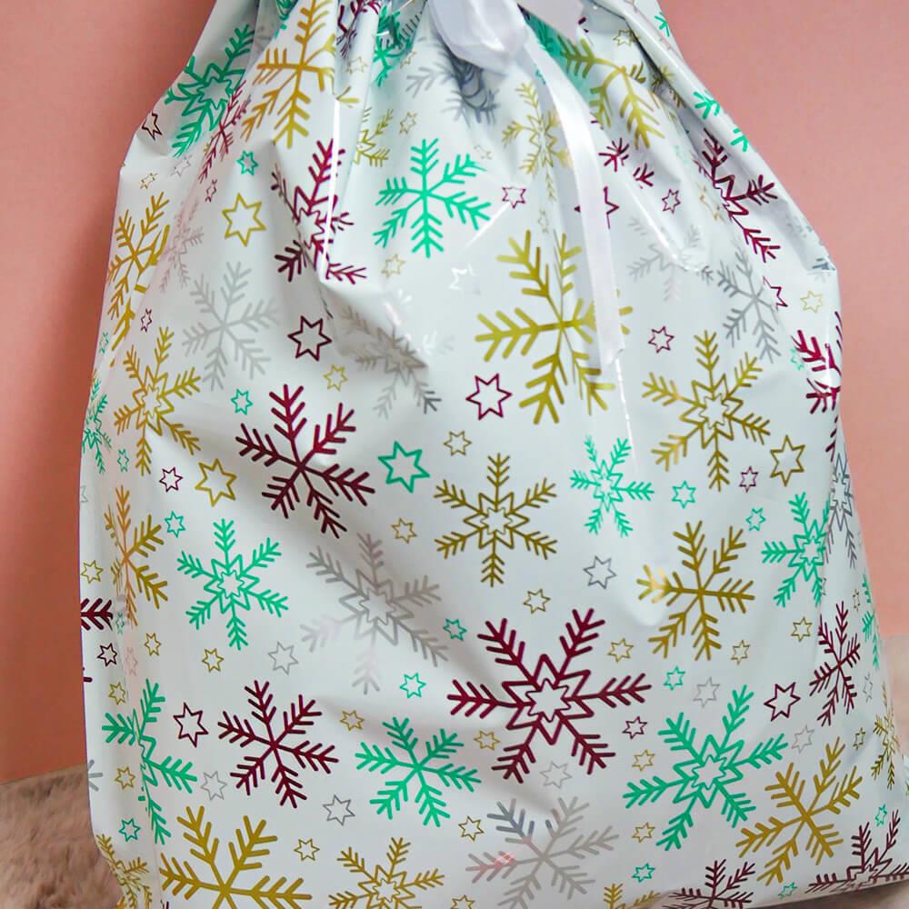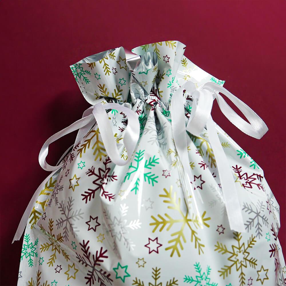 Obrázok z Vianočné darčekové baliace vrecko so šnúrkou - 51x39 cm - snehové vločky