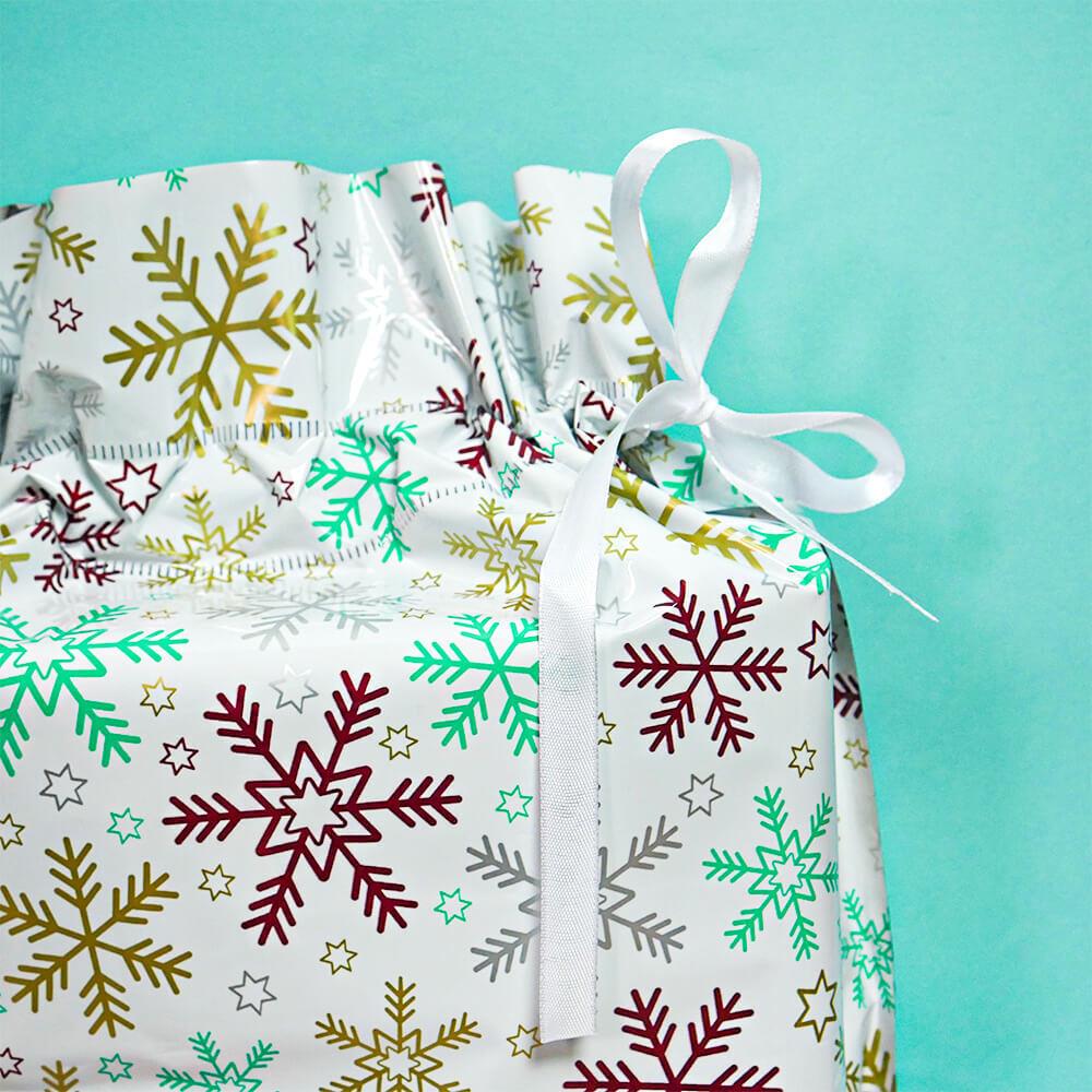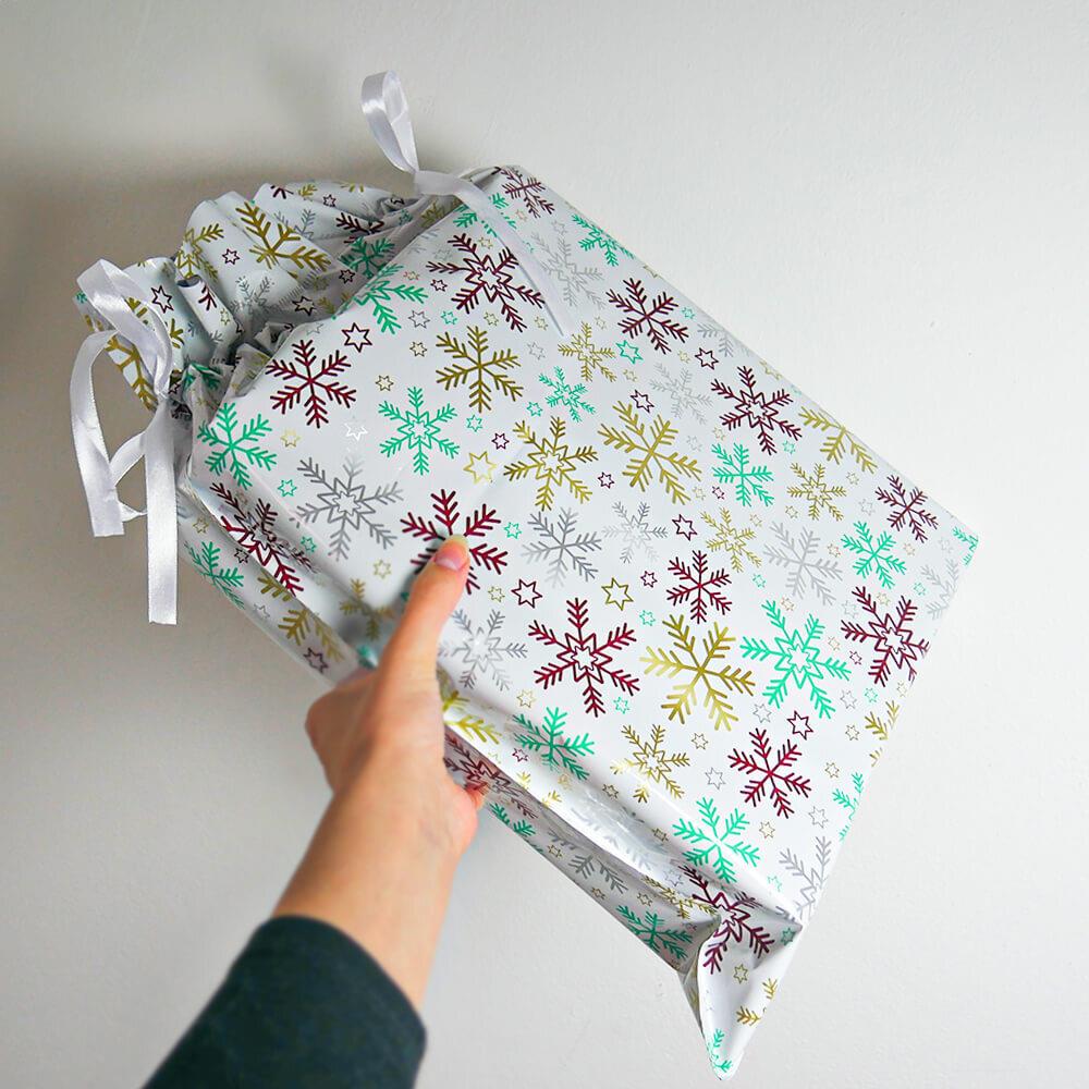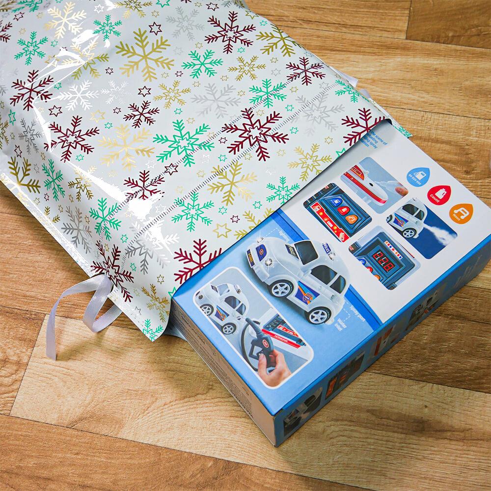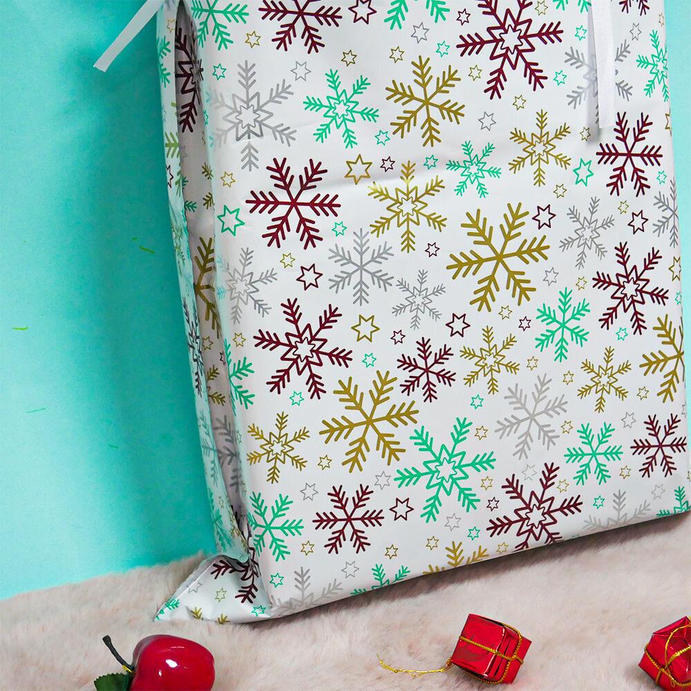 Obrázok z Vianočné darčekové baliace vrecko so šnúrkou - 51x39 cm - snehové vločky