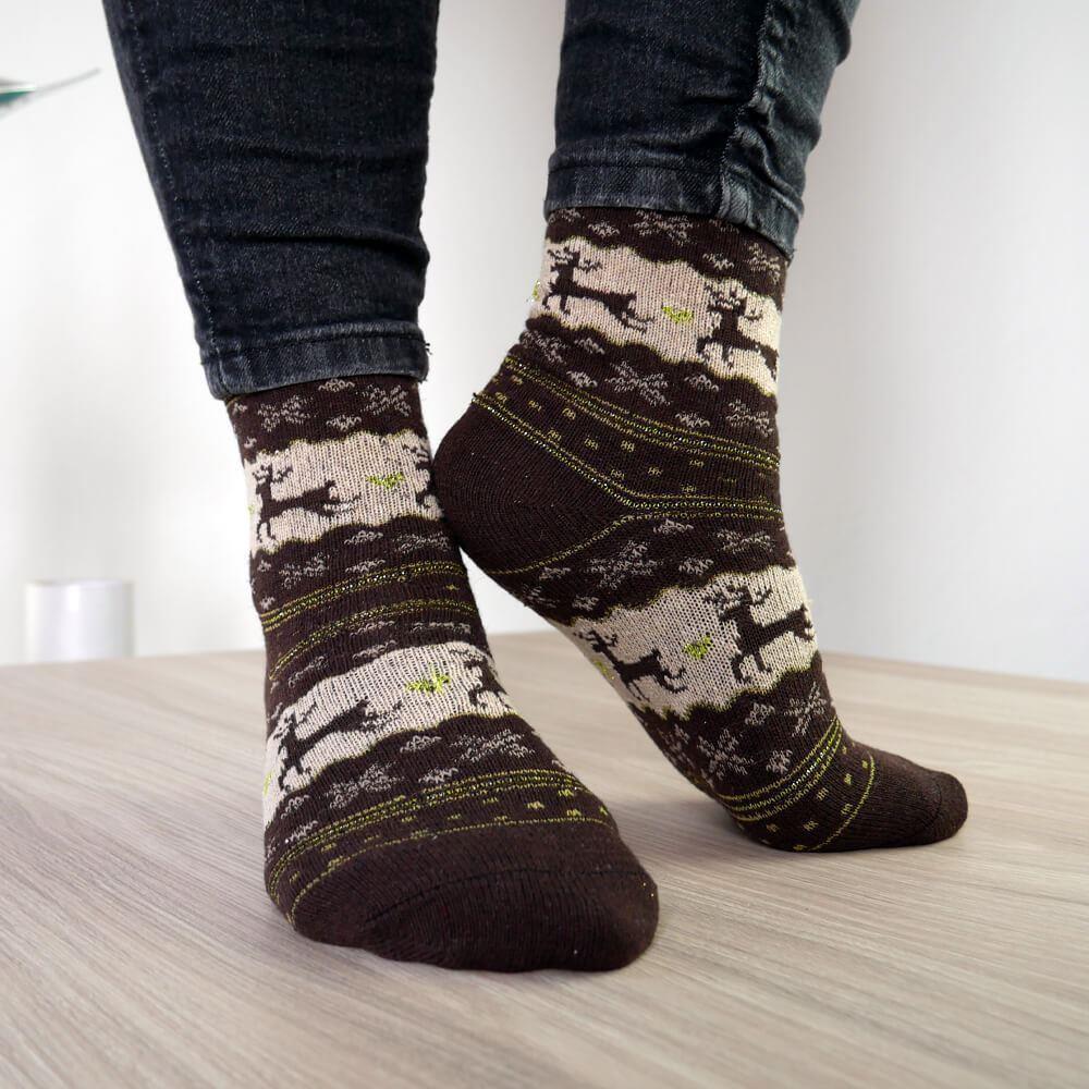 Motív nórskeho vzoru je veľmi obľúbený a ponožky s jeleňom by vo vašom šatníku rozhodne nemali chýbať. A hlavne – ponožky nesmú chýbať pod stromčekom! Nórsky vzor poteší babku, dedka, sestru aj brata. S týmito ponožkami rozveselíte svoje okolie.