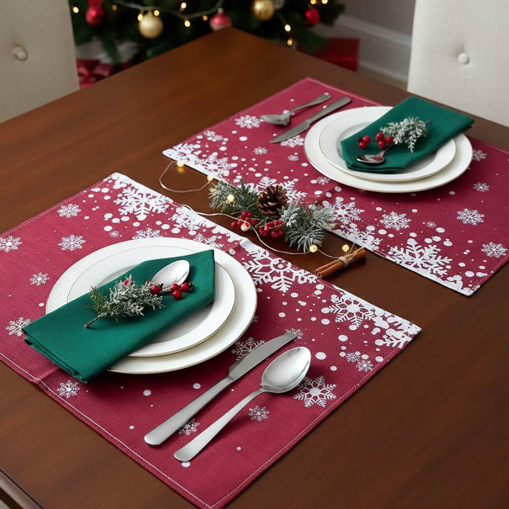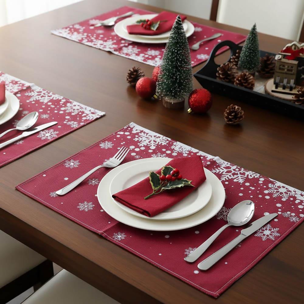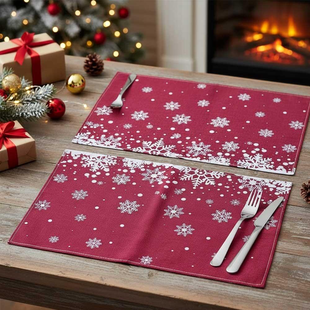 Na Vianoce zdobíme svoj domov nielen stromčekom, ale aj všemožnými dekoráciami a svetielkami. Do okien lepíme všemožné zimné a vianočné motívy, rozmiestňujeme sošky a svietniky, a nesmieme tiež zabudnúť na náš jedálenský stôl, ktorý by mal vyzerať štýlovo nielen pri štedrovečernej večeri! S týmto prestieraním s motívom vločiek totiž svoju tabuľu môžete vylepšiť hneď, ako sa v kalendári oficiálne začne zima! Kúzelné vločky na červenom podklade zapadnú do každej domácnosti a výborne zapadnú aj medzi honosnejšiu výzdobu.