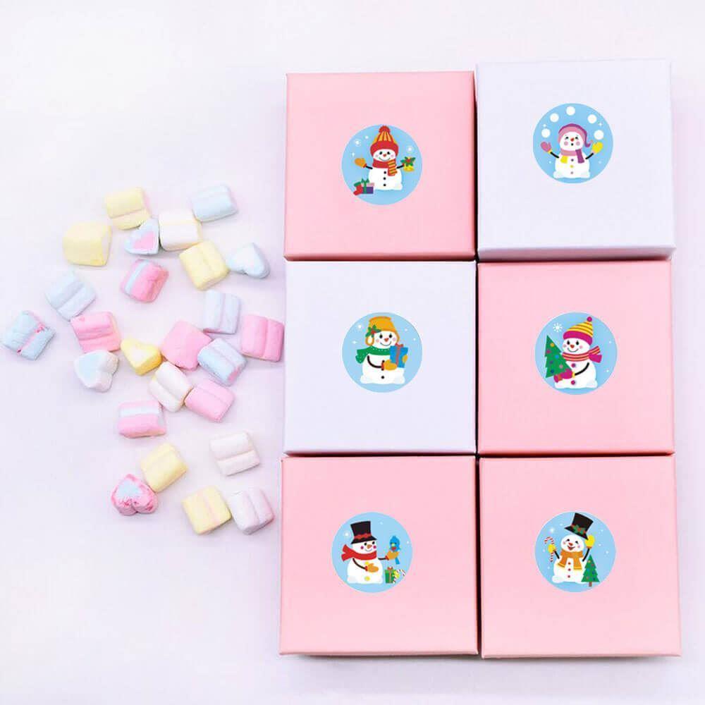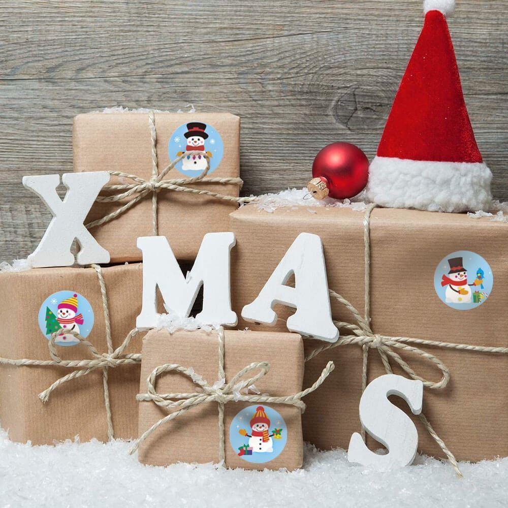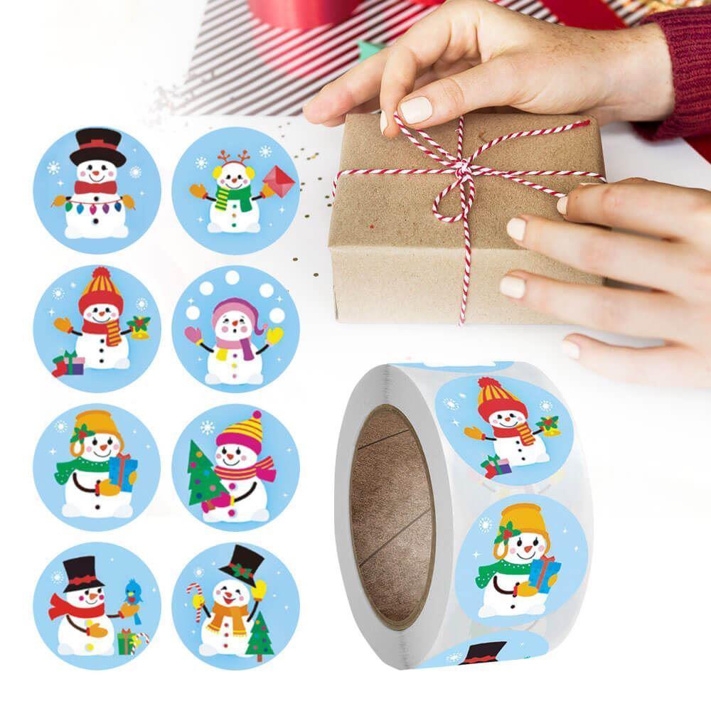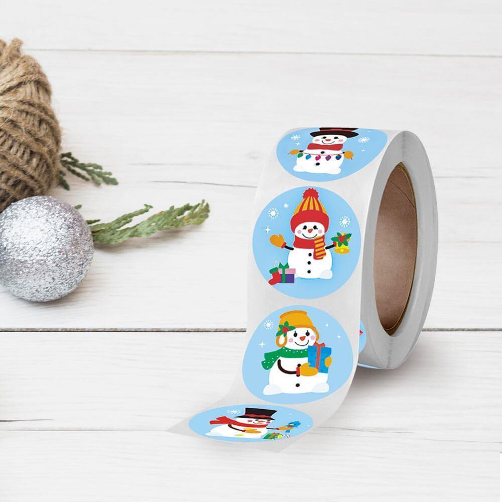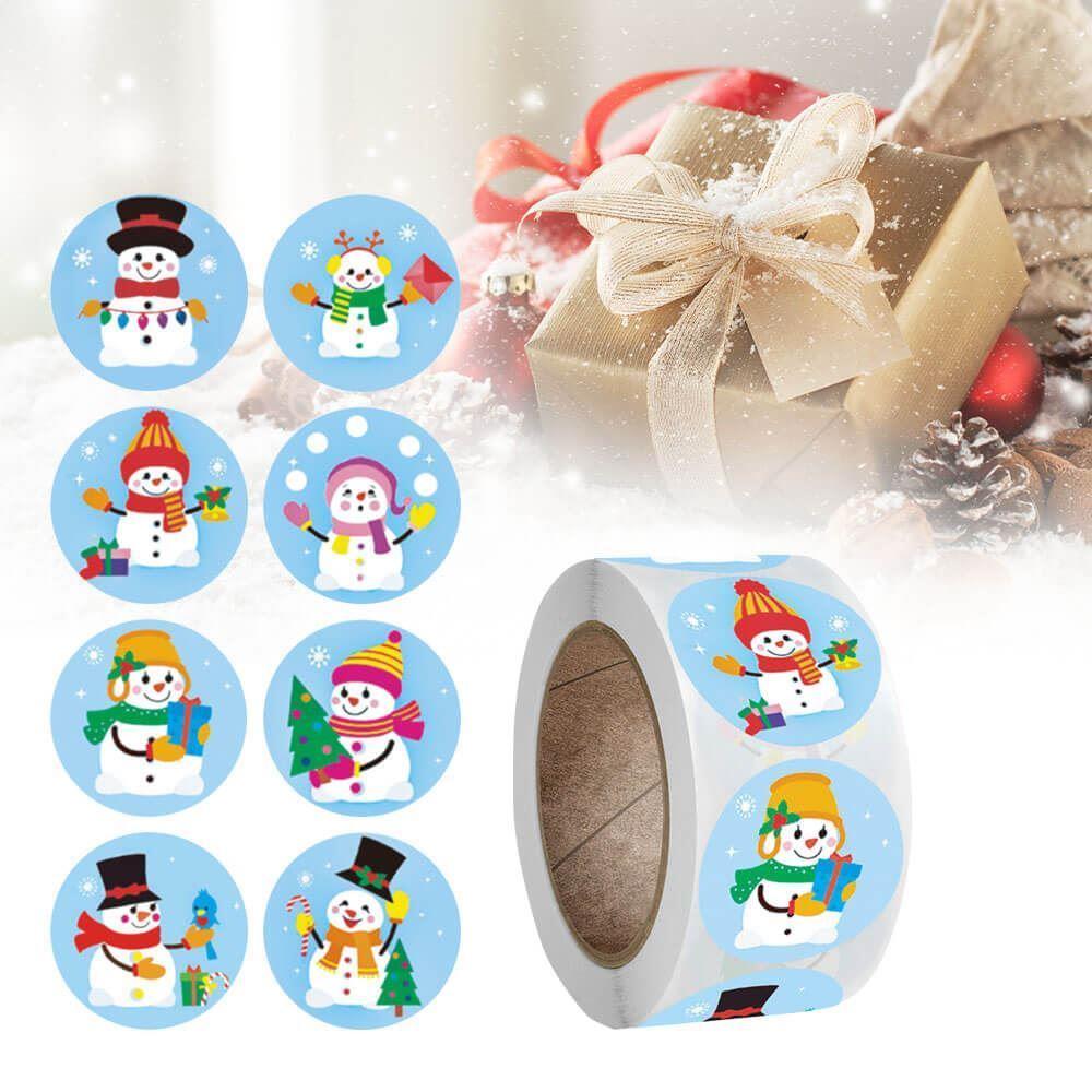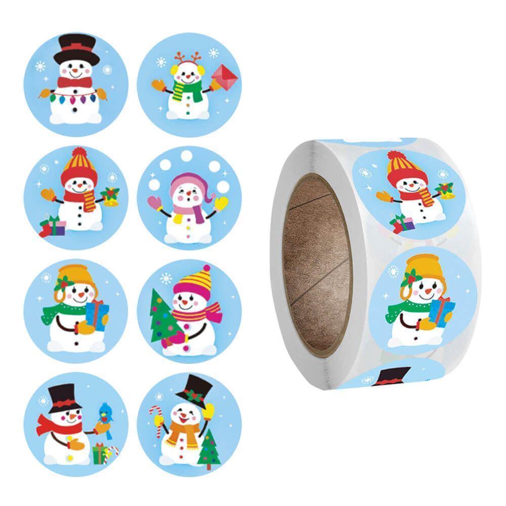 Vianočné samolepky 500 ks - veselí snehuliaci