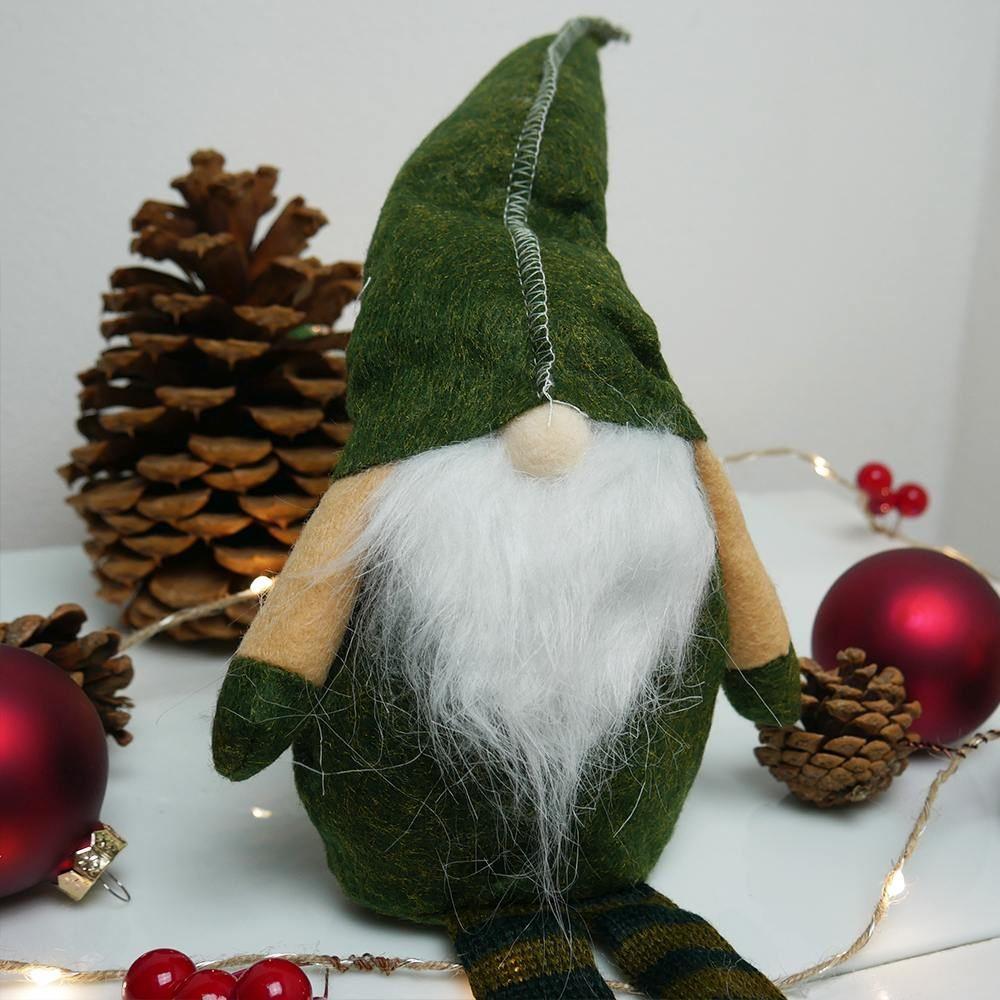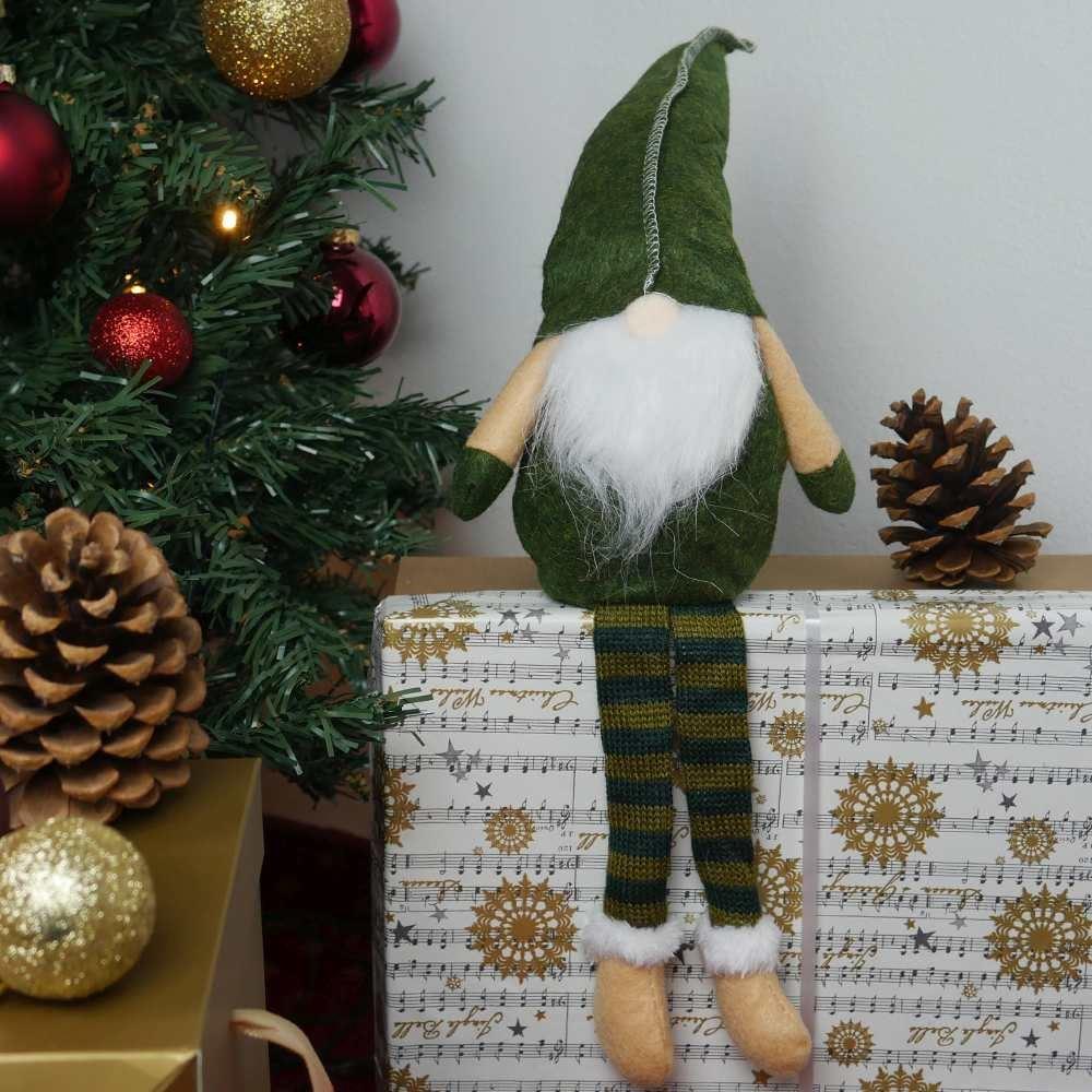 Vianočný škriatok s vysokou špicatou čiapkou, chlpavými bielymi fúzmi, roztomilým guľatým nosom a pruhovanými pančuchami skvele doladí vianočnú atmosféru vo vašom byte. Stačí ho posadiť na okno, krb, poličku či skrinku. Škriatok bez problémov sedí, má totiž pevnú základňu, vďaka ktorej sa neprevrhne.