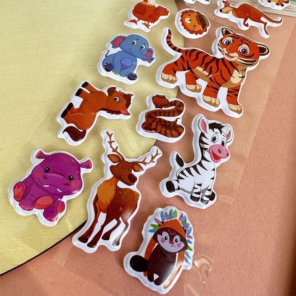 Vypuklé samolepky so zvieratkami - tigrík a kamaráti