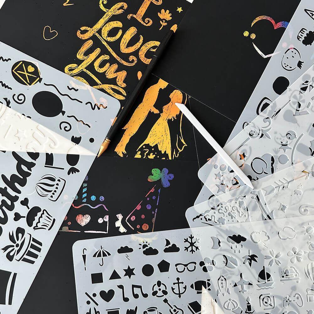 V balení na vás čakajú dva druhy farebných papierov, ktoré môžete pomocou pera s dvojitým hrotom vyškriabať do dokonalých umeleckých diel. Nemáte nápad? Nevadí! Pre tieto prípady sme k papierom priložili šablóny, s ktorými je úspech zaručený. Zatočte s nudou alebo si len vyskúšajte, aké je to relaxovať pomocou tvorby - táto skvelá súprava vás v žiadnom prípade nesklame.