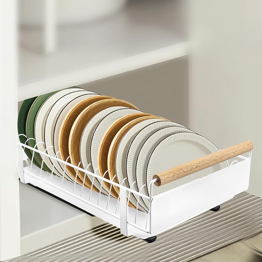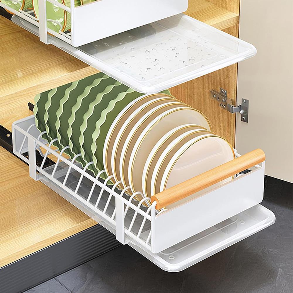 Vneste do svojej kuchyne poriadok a štýl s týmto šikovným výsuvným organizérom a odkvapkávačom na taniere! Premyslený dizajn s odolnou kovovou konštrukciou a elegantnými drevenými úchytkami zabezpečí, že váš riad bude vždy perfektne usporiadaný a ľahko dostupný. Praktická výsuvná konštrukcia šetrí miesto a umožňuje jednoduchú manipuláciu aj v menších kuchyniach.