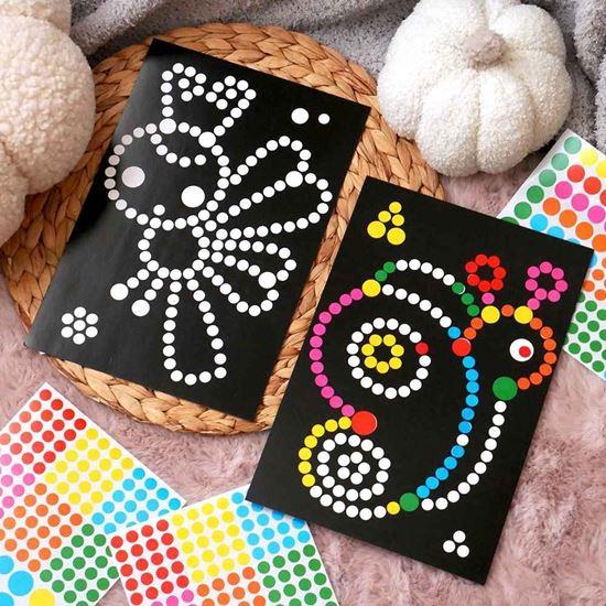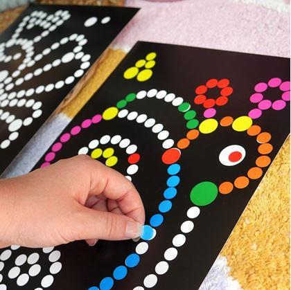 Vyčariť úsmev na detskej tvári a ešte niečo naučiť? Áno, aj to dokáže toto kúzelné zábavné lepenie, s ktorým si vaše deti užijú množstvo zábavy! Nielen kreatívne deti ocenia, keď sa môžu venovať aktivitám, ktoré ich bavia, a hlavne pri ktorých im pod rukami vzniká niečo, čím sa následne môžu pochváliť. S pomocou farebných samolepiacich bodiek a predlohy deti vytvoria krásne motívy. Čím precíznejší budú, tým krajší bude aj obrázok, a tak je potrebné si dať záležať.