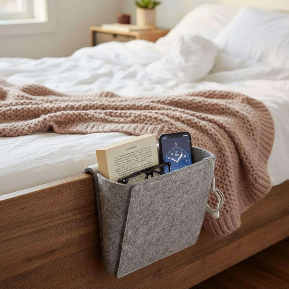 Tento organizér ho dokáže skvele zastúpiť a pritom pojme všetky potrebné veci. Do organizéra sa zmestí napríklad kniha, okuliare, perá, časopisy, ovládač alebo iné drobnosti. Organizér je vhodný na zavesenie za rám postele. Je možné ho využívať nielen pri posteli, ale tiež ho mať na okraji pohovky. Ponúka dostatok miesta, pretože sa skladá z jednej hlavnej kapsy, ktorá v sebe má ďalšie dve menšie kapsy.