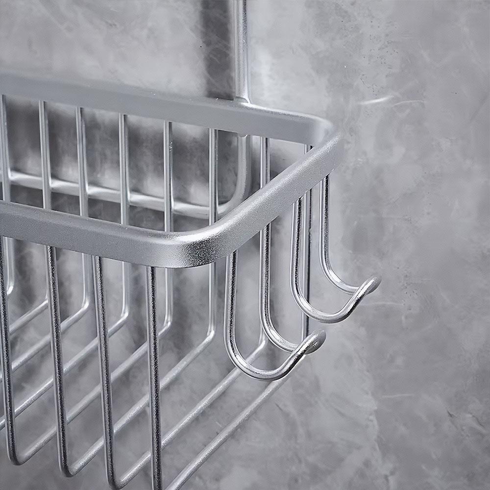 Protišmykové úchyty zaistia pevné uchytenie, zatiaľ čo dva bočné háčiky umožnia zavesenie hubiek alebo žiletiek, čím maximalizujú úložný priestor. Minimalistický dizajn elegantne doplní akýkoľvek štýl kúpeľne.